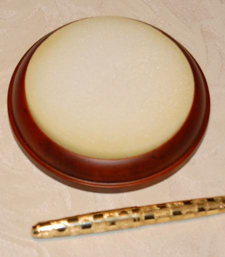 3 3/4" round / 9.52cm roundThis mahogany pincushion measures 4 3/4" (12.06cm) round with a design size 3 3/4" (9.52cm) of is the perfect setting for that small design. It is well finished and would make an ideal accessory for your embroidery or a wonderful gift for a friend.