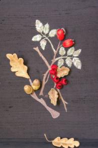Worked on a black satin background with overdyed cottons. This stumpwork captures the essence of Autumn with stunning colours.
