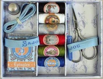 The colours of pin box, sewing needles booklet and cards for ribbons is randomly choosed among the six existing colours.