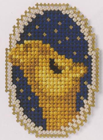 Camel Cameo is one of 3 Cameo's in thsi issue. The Donkey, Camel, & Calf. They can either be made up as flat ornaments or Jill has included instructions to make these into a 3 sided ornament. The Stitch Count of each one is 23 wide x 34/36 high. Both Anchor & DMC threads are listed as options. This issue also features the following designs