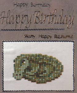 Crocodile: As part of the card collection in this issue the crocodile can be completed in both beading or cross stitch. The stitch count is 30 wide x 20 high and both Anchor and DMC thread options are listed. To complete in beads Jill used Delica Round Beads size 11/0 in the following colours: DBR 10/327/324/373/ 374 & 202. This issue also features the following designs: