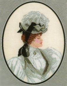Fair Lady by Di Noyce (after Harrison Fisher) has a stitch count of 131 wide x 170 high. It was worked on 18 count aida using two strands of cotton.