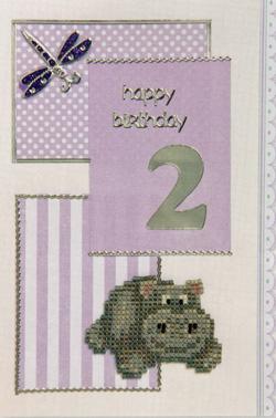 Hippo - As part of Jill's card collection in this issue the Hippo can be completed in cross stitch or beading. The cross stitch charts show both Anchor and DMC thread options. The beads used are Delica Round size 11/0 in colours: DBR 10/ 1063/ 863/ 1589/ 1528/ 202/ 1482. The following designs are also featured in this issue.