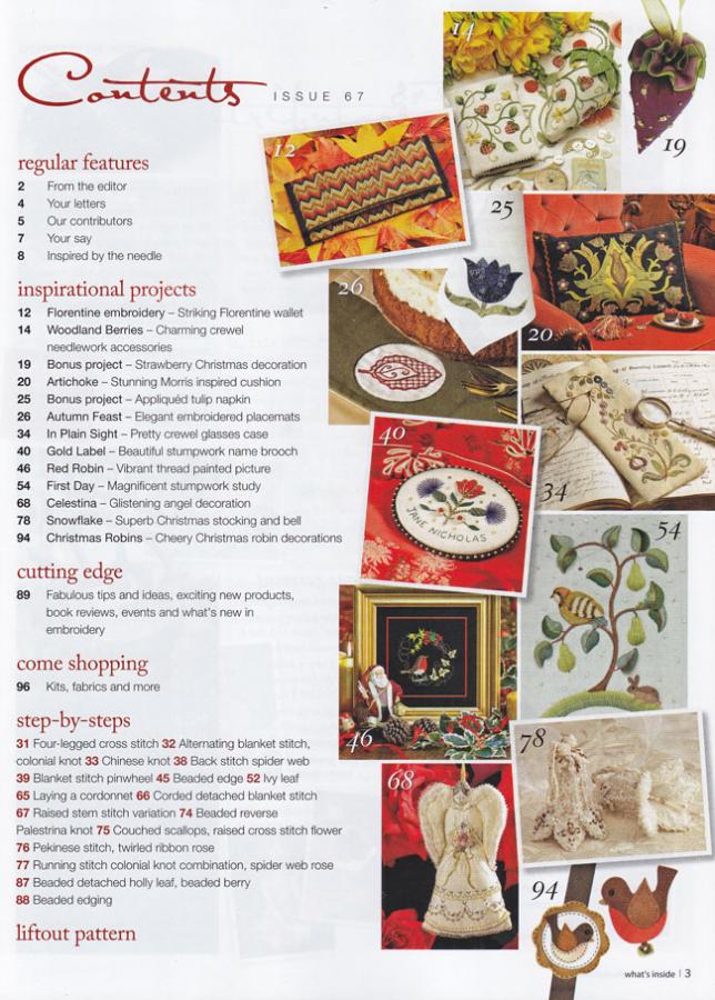 Country BumpkinFrom a striking redwork pin pillow to an exquisite thread painted picture, the latest issue of Inspirations features 15 breathtaking embroidery projects, complete with full-sized pattern sheets where required. Showcasing an abundance of exciting techniques, the stitches are clearly demonstrated by step-by-step photographs and instructions, encouraging needleworkers of all skill levels to broaden their stitch vocabulary while re-creating these stunning designs. Other inspirations projects include: • Pansy embellished needlecase • Sumptuous gold work picture • Stunning embroidered tulip • Beautiful needlework bags • Vibrant children’s blankets • Elegant Hardanger mat • Pretty pair of children’s aprons • Redwork diary cover • Hardanger potpourri sachet • Cute mobile phone holder New and experienced stitchers alike will also enjoy reading the latest needlework news and fascinating stories from embroiderers around the world