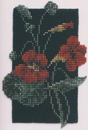 Nasturtium Amulet - Amulet Bag or Beaded Art - This design can be completed in any of the options described. It is completed using Miyuki Delica cylinder beads in size 11/0. These are available from this website.