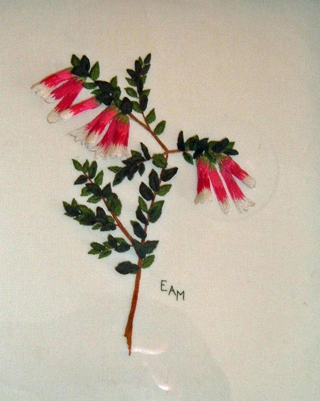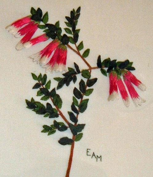 16cm x 12.5cm (6.29" x 4.92")The design for the Native Fuchsias (Epacris longiflora) was inspired by a visit to a National Park near Manly in Sydney (Australia). It is created using the Barbola technique which is related to Stumpwork but does not use wire, resulting in a lifelike and fine flower.