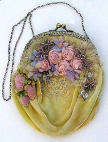 Art Nouveau sumptuous, rich & divine evening bag embellished with silks, felt & beads.