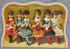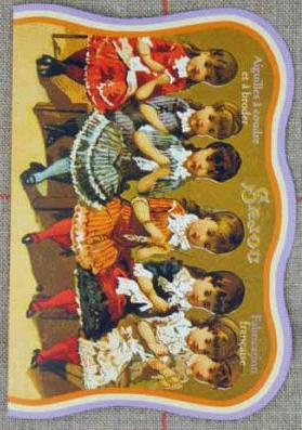 The cover is a 19th century picture representing some young girls following a sewing lesson. The inside is a floral paper in pink and green tones.