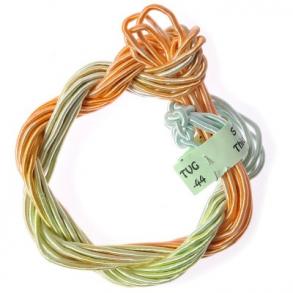 Viscose Gimp is a very round special yarn consisting of a cotton core wrapped with fine rayon thread to form a sheath. It has many uses including the wrapping of wooden tassel tops. It is available in an excellent colour range.