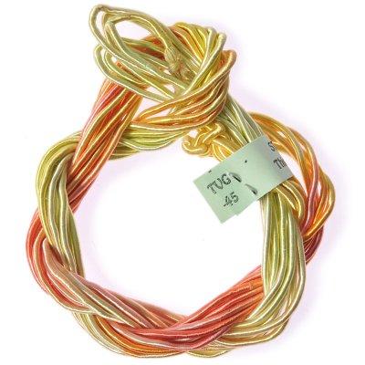 Viscose Gimp is a very round special yarn consisting of a cotton core wrapped with fine rayon thread to form a sheath. It has many uses including the wrapping of wooden tassel tops. It is available in an excellent colour range.