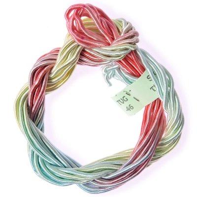 Viscose Gimp is a very round special yarn consisting of a cotton core wrapped with fine rayon thread to form a sheath. It has many uses including the wrapping of wooden tassel tops. It is available in an excellent colour range.