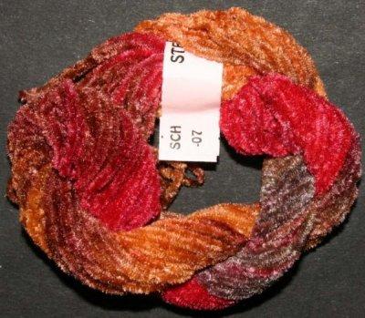 Silk chenille is a fairly heavy, fluffy textured thread, which takes dye very well. This range is hand dyed by Stef Francis. It is excellent for adding texture to your embroidery and textiles.