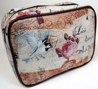 This Nouveau Chic Toiletry Bag measures 25cm x 19cm x 8.5cm. It is made from PVC and has a nylon lining.
