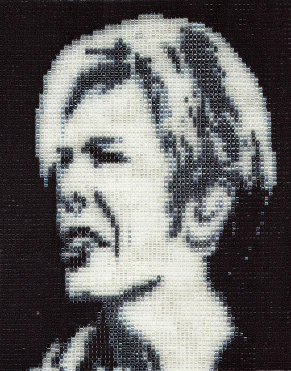 Worked in square stitch using the drapery method 11/0 Miyuki delica beads were used with white and black nymo thread size D and a blunt size 10 beading needle.