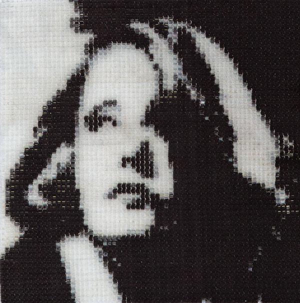 Stars of Stage and Screen. Greta Garbo was worked in square stitch using the drapery method. This design has instructions for beading or cross stitch. The stitch count is 65 wide by 65 high and the threads listed are shown in both anchor and DMC.