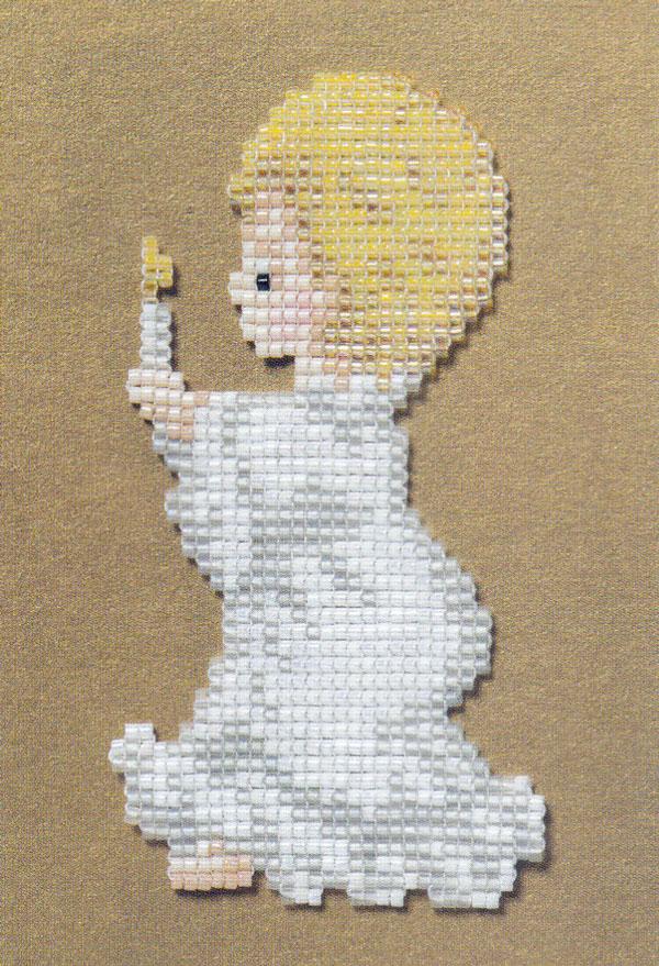 The Littlest Angel with Candle has a stitch count of 31 wide x 50 high and can be completed in beading or cross stitch. The beads used are 11/0 Miyuki Delica cylinder beads with white nymo thread size D and a blunt beading needle size 10. When ordering this pattern you will recieve Issue 93 which is full of Christmas designs.