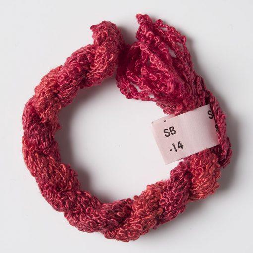 Stef Francis Silk Boucle is a fancy yarn and creates a creative appearance even when straight stitched. It is hand dyed, beautifully soft and each skein comes in an 8 metre length.
