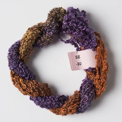 Stef Francis Silk Boucle is a fancy yarn and creates a creative appearance even when straight stitched. It is hand dyed, beautifully soft and each skein comes in an 8 metre length.