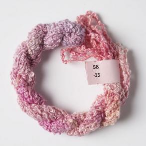 Stef Francis Silk Boucle is a fancy yarn and creates a creative appearance even when straight stitched. It is hand dyed, beautifully soft and each skein comes in an 8 metre length.