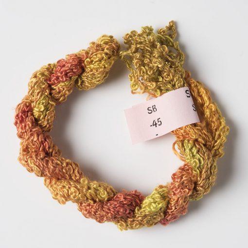 Stef Francis Silk Boucle is a fancy yarn and creates a creative appearance even when straight stitched. It is hand dyed, beautifully soft and each skein comes in an 8 metre length.