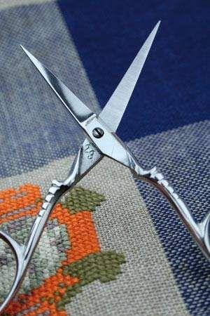 These scissors are extremely fine with very pointed blades. The handles have a delicate cable twist motif.