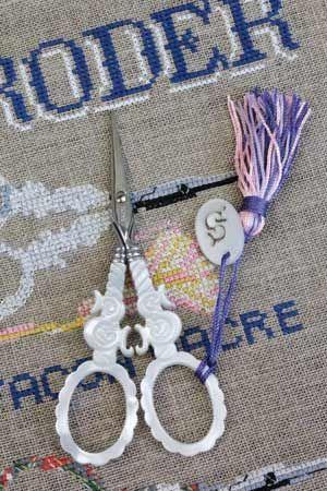 Sajou from ParisInspired by the Charles X style, this pair of embroidery scissors reproduce the Sajou "S". The finger rings are beautifully decorated with a festoon detail. The handles are made from imitation mother of pearl, a material which was often used in the past for delicate sewing items.