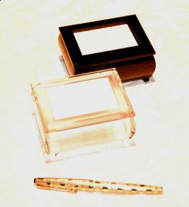 1 7/8" x 2¾" / 5cm x 7.06cmThis Keepsake Box is made with Lucite and measures 2" x 3" x 4" (5.08cm x 7.62cm x 10.16cm) Lucite is a material that has both properties of plastic and glass and mirrors the clarity of glass. It is heavier in “feel” as compared to traditional plastics and is of the highest quality.