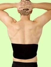 The back belt is made of a soft washable fabric with a velcro closure. The pad slips inside the inner pocket. It is not cumberson.