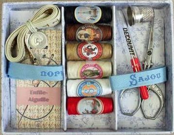 Thread colours may vary subject to availability of our stocks, however, they will always be in the same tones. The colour of the needle booklet is subject to variation, as is the label on the pin rosette and the thread cards.