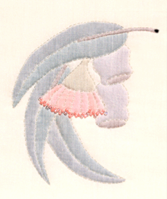 12cm x 15cmThe Caesia Gum Blossom is yet another Australian icon. The pink blossom is beautifully finished with a gleaming row of mixed pink beads. Ideal as a book cover, inserted into a cushion top or as a fabulous framed picture. This design is just so easy for beginners.