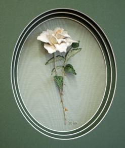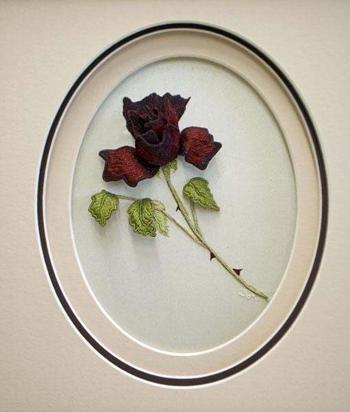 The Rose kits are among the best sellers of Jennys kits. The Champagne rose is worked in beautiful Au Ver a soie silk, blending shades to create a replica of the real thing.