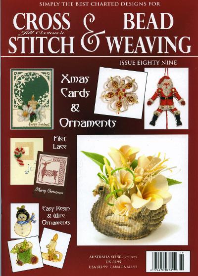 Jill OxtonJill Oxton's Cross Stitch & Bead Weaving Issue 89 includes numerous Christmas ideas in both Cross Stitch & Bead Weaving. All designs have full instructions, charts and materials list whether beading or Cross Stitch, where the project is designed for both. When ordering Issue 89 you will recieve all patterns for the projects as listed.