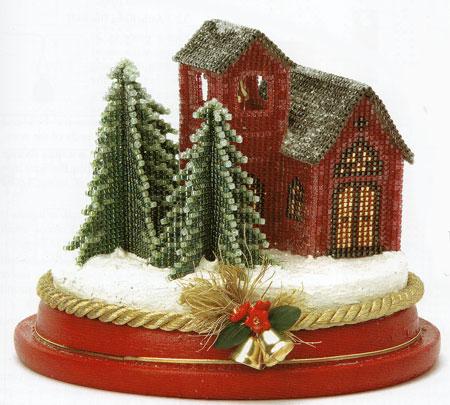The Church is a delightful ornament worked in square stitch. It could be used as part of a table setting or even to top the Christmas Cake.