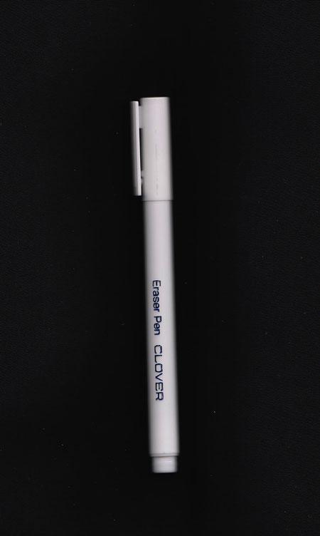 The Clover Erasure Pen removes markings used by the Water Soluble Marker Pen.