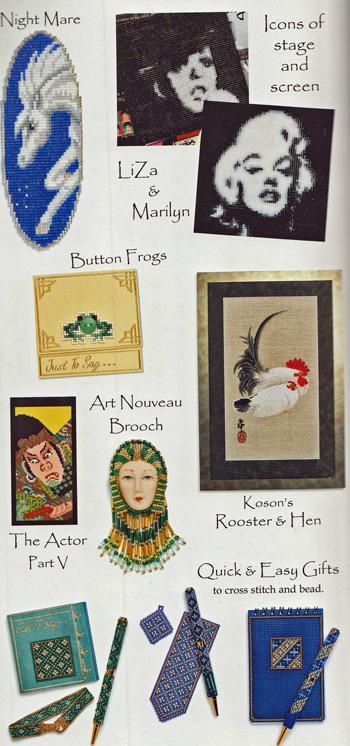 This issue features full colour photographs, instructions, charts and requirements with a step-by-step guide to square stitch. The threads used are given as an option of DMC or Anchor. The beads listed are Miyuki Delica Cylinder Beads size 11/0 - beads are available on this website.