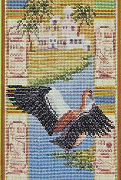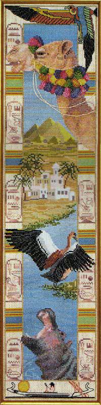 Eygpt - This is part of the collection of Panels that have been designed by Di Noyce and published by Jill Oxton. The Stitch count for the panel is 77 wide x 330 high however it can be broken down into much smaller designs if preferred such as the camel, scenery, Eygptian Goose, or hippo. Both Anchor & DMC threads are listed as options.