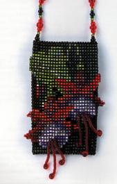 The Fuchsia Amulet is worked in square stitch. The amulet is made as one piece and folded. It uses Miyuki Delica beads 11/0