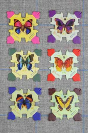 This thread card series features butterflies: Terinos Clarissa, Pyrrhanea Troglodyta, Agrias Claudia, Papilio Blumei, Papilio Lycrophon et Kallima Paralekta.