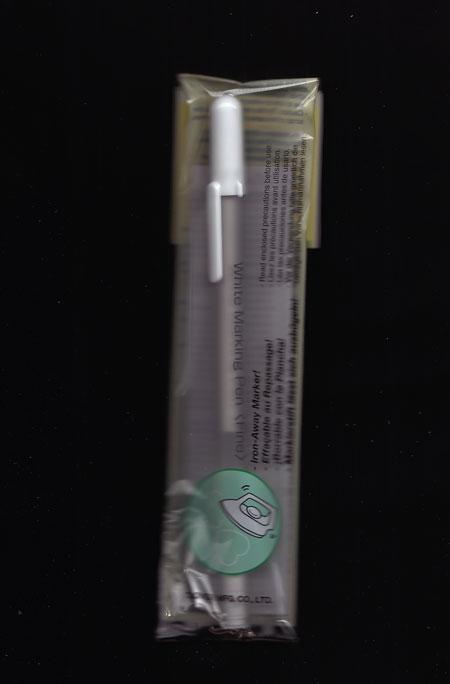 Using the white marker makes marks more visible even on colour fabrics. White marker pen disappears with use of iron or when washed.