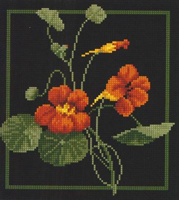 Large Nasturtiums - The stitch count of this is 105 wide x 113 high. In this issue Jill shows how to assemble a shopping bag which she has attached this design to. Alternatively it will look excellent framed. Both DMC & Anchor thread options are listed.