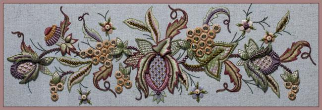 This 4-day workshop will cover, not only a multitude of crewel embroidery stitches, but also the concept of using stumpwork, beads and Swarovski crystals to enrich the time honoured Jacobean style of stitchery.