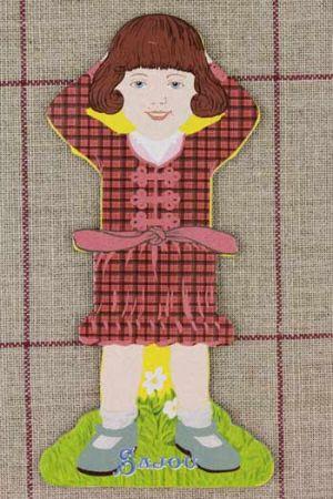 This delightful perfect little girl is a large card for a fun way of winding your bits of ribbons or threads. Two colours can be wound - one above the belt and one below. The card has a different print on the back and is made of 2 mm thick cardboard and measures 14.5cm high x 7cm wide.
