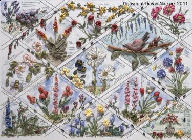 Beautiful water colour printed onto pure cotton fabric for you to start embroidering right away. There are 13 panels in this magnificent sampler. The sampler is part of the One on One Lessons with Di van Niekerk. Let her take you step by step through the completion of this beautiful design.