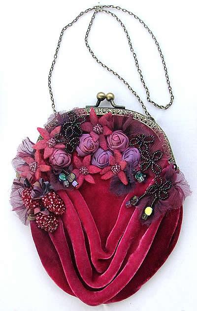 Art Nouveau sumptuous, rich & divine evening bag embellished with silks, felt & beads.