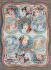 The cover represents six women's in an Art Nouveau style (19th century). The interior is a floral print in blue and pink tones.