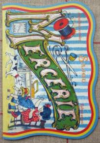 The cover represents little girl repairing her doll. The interior is a floral print in cream tones.