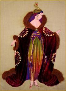 28cm x 38cmCatherine has created another stunning lady emulating the beautiful work of the 19th century artist Erte. To create this design you will manipulate silk velvet and crinkle silk. You will embellish with colourful silk threads, silk ribbons, beads and sequins, bringing this elegant lady to life enhancing her cloak with faux fur and a gold brooch. The complete design is on a gold, pure silk background.