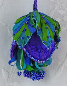 8cm x 5cmSilk ribbon embroidered tassel. Buttonhole & ribbon stitch, handmade cord, beaded stamen tassel with beads complete this tassel to adorn that drawer or dresser handle. Suitable for all skill levels. Approx size not including handle 8cmL x 5cmW - Monet/purple