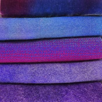 Each pack has 5 pieces of fabric approximately 27x15cm or larger. Fabrics included wool fabric, upcycled wool blanketing some dyed, hand dyed wool felt, mixed wool/rayon felt and hand dyed silk/rayon velvet. Please be advised that shades may vary as some of the items are hand dyed.