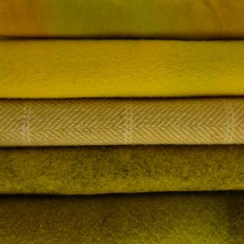 Each pack has 5 pieces of fabric approximately 27x15cm or larger. Fabrics included wool fabric, upcycled wool blanketing some dyed, hand dyed wool felt, mixed wool/rayon felt and hand dyed silk/rayon velvet. Please be advised that shades may vary as some of the items are hand dyed.